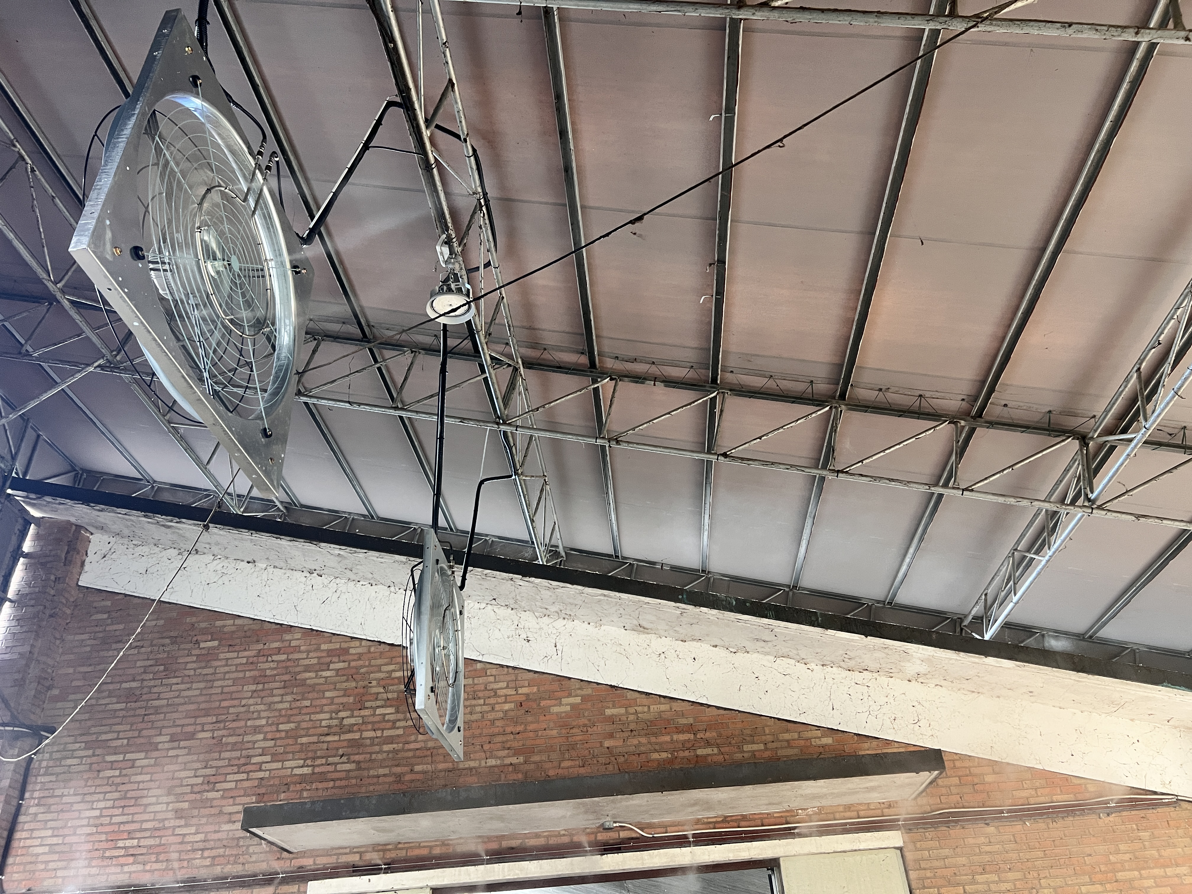 - 2) 대형 미스트팬을 통한 3D 입체 공기 순환: 천장에 설치된 대형 미스트팬이 수직·수평 방향의 강력한 공기 흐름을 만들어냅니다. 이를 통해