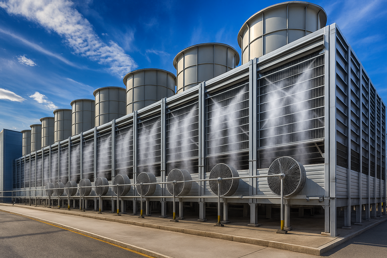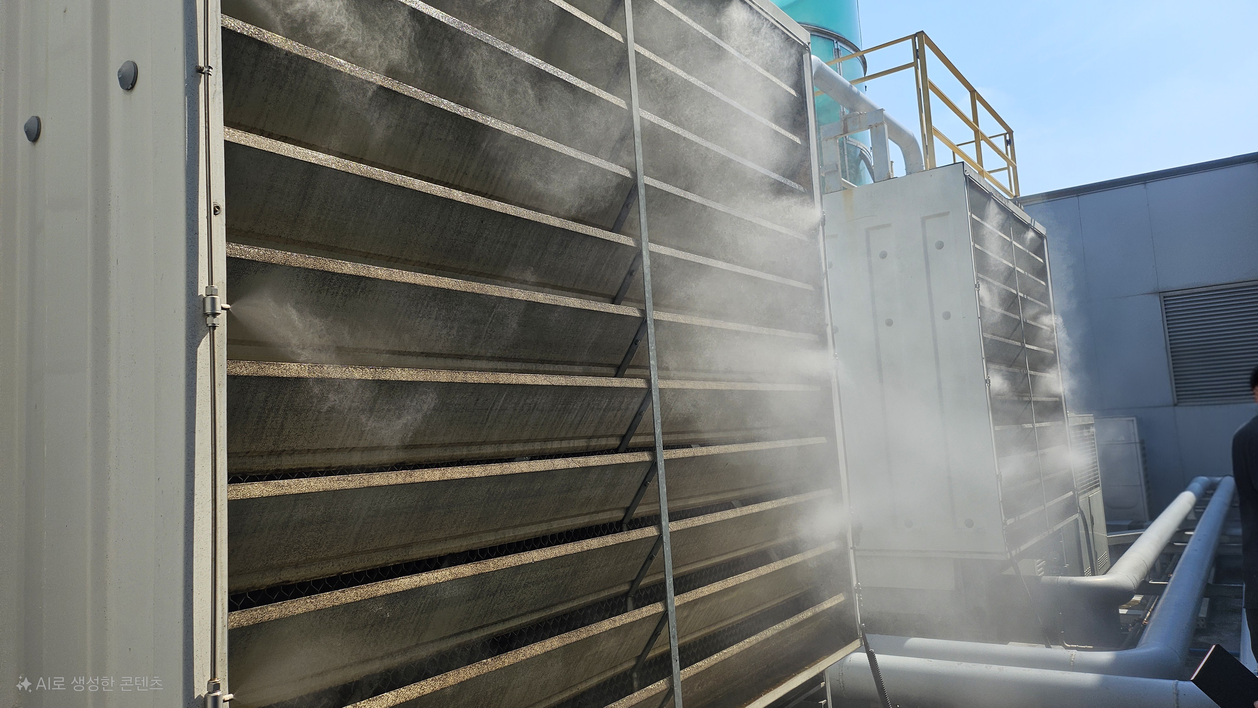 현장의 냉각 설비(에어컨 실외기, 냉각탑, 공랭식 열교환기, 칠러, 항온항습기)에 스마트 ICT 고압안개분무시스템을 적용하여 설비